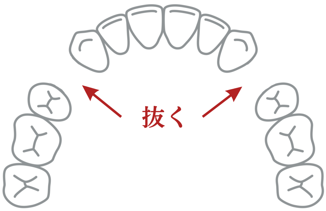 この方法なら親知らずを抜いた広いスペースを利用できますから、小顔であごが小さい患者さんでも治療が可能。