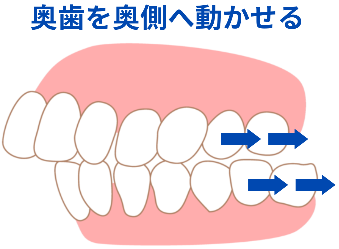 それにより空いたスペースに次の奥歯を動かし、さらに次の奥歯を動かします。