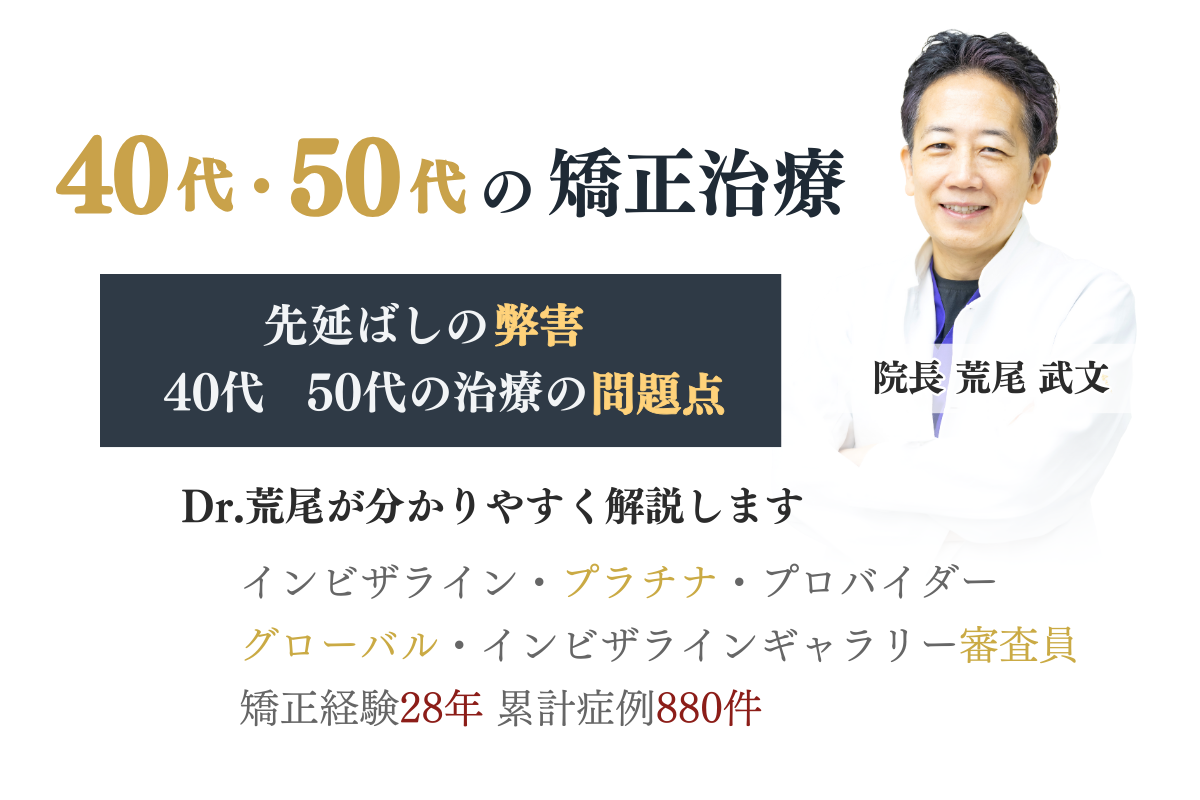 こちらでは、40代・50代で矯正治療をお考えの方に、知っておいていただきたいことをまとめました。ぜひご一読ください。