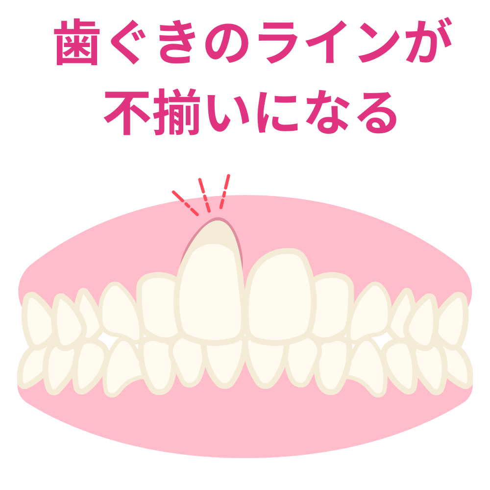 噛み合わせもずれていき、顎の関節にも不自然な負担がかかり続けて、顎関節症のリスクも高まります。