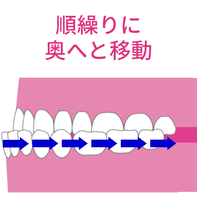 親知らずを抜いたスペースに奥歯を順に動かしていくことで、前歯をきれいに並べるスペースを確保します。