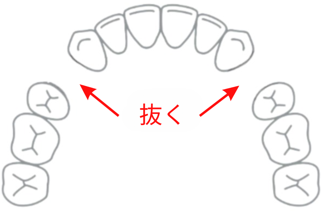 具体的には前から4番目の歯を抜いて、前歯を並べるスペースを生み出します。